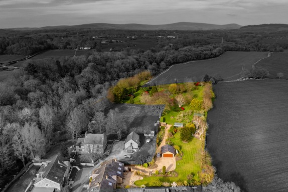A private entrance driveway leads via the formal gardens to a double garage, with a stone flagged patio and an immaculately maintained summer house. This space being ideal for outdoor entertaining. The parkland grounds extend further to include a heated greenhouse, an established vegetable garden, productive fruit trees and riverbank.